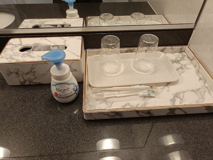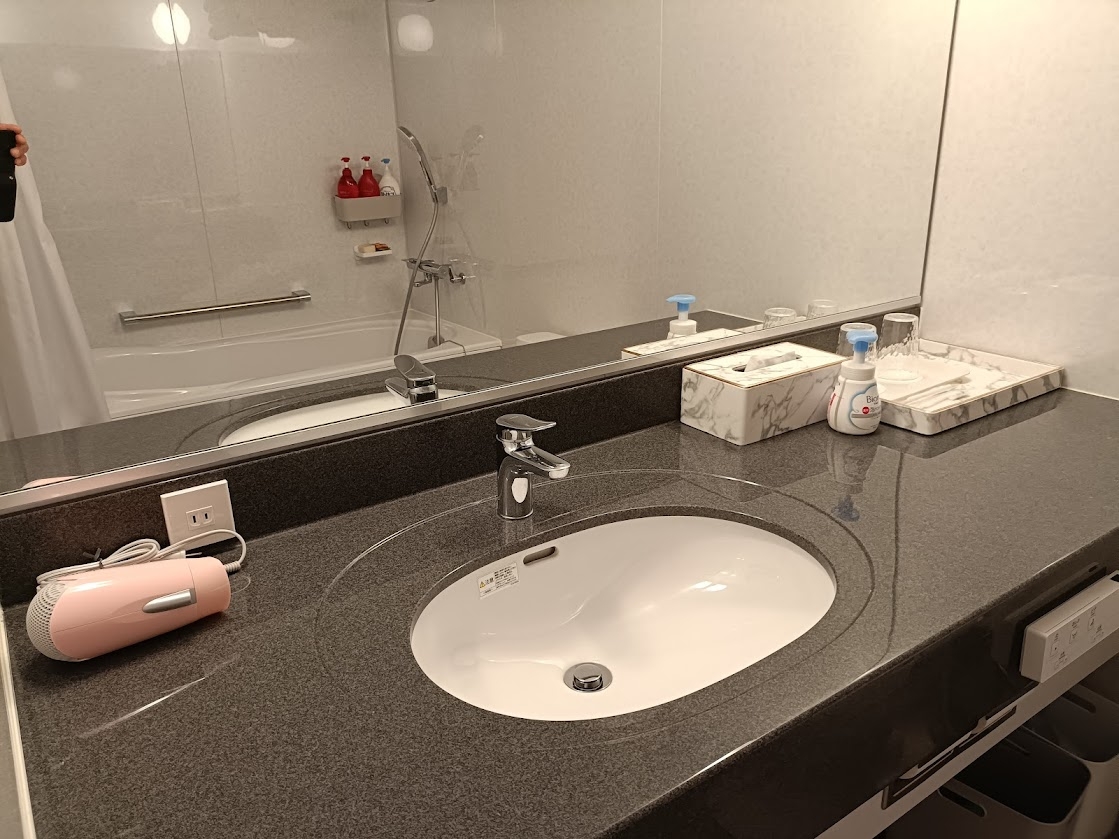大きな鏡と洗面台で使い勝手良好な洗面設備。