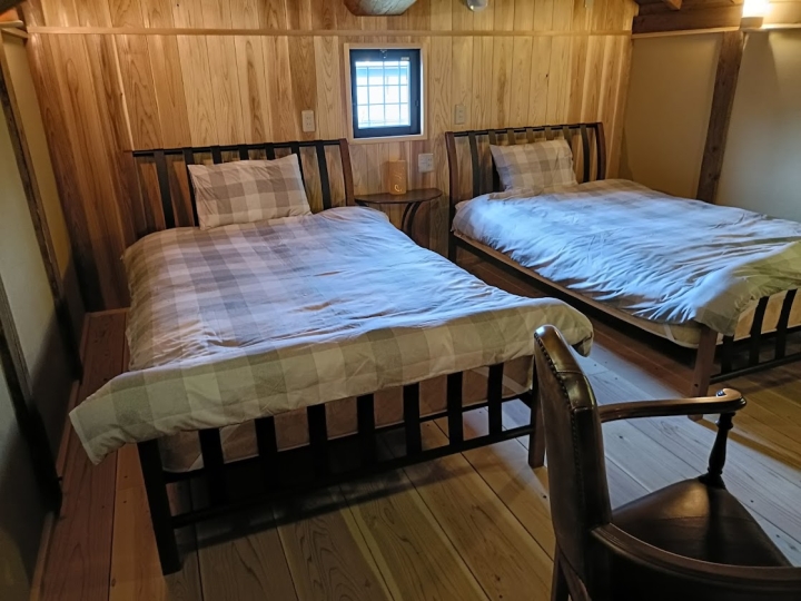 洋室には2名様分のセミダブルベッドをご用意しております。